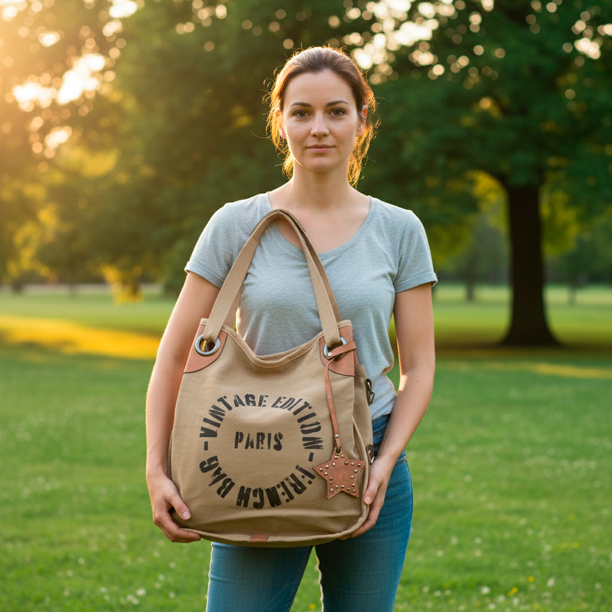 El Bolso Vintage Paris combina la practicidad de un tote con un diseño versátil y sofisticado que nunca pasa de moda. Confeccionado en lona reforzada con detalles en cuero, ofrece resistencia y estilo, siendo el aliado perfecto para la mujer moderna que busca un accesorio funcional sin dejar de lado la elegancia.