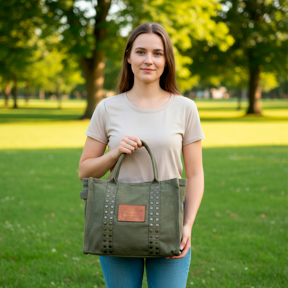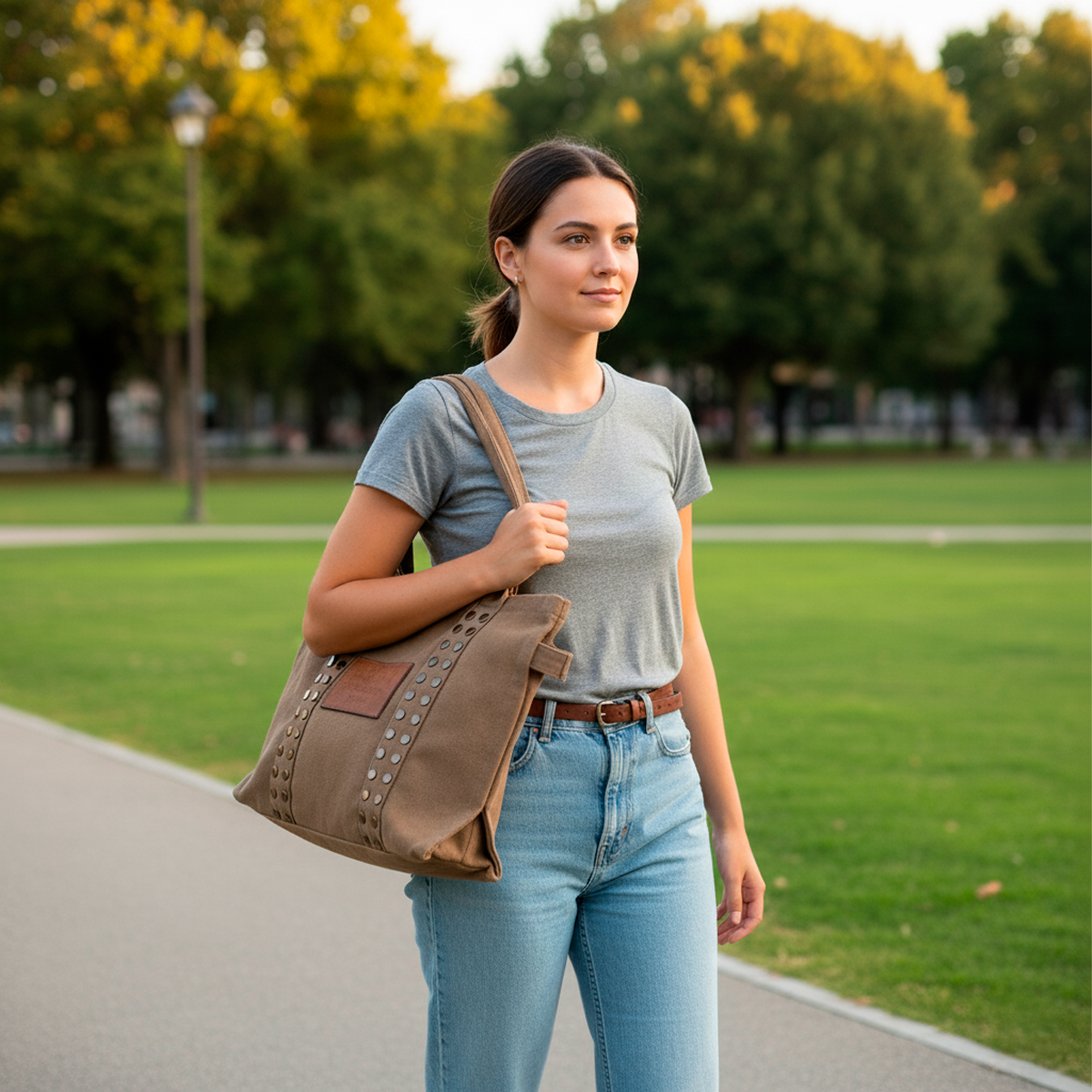 El Bolso Kaia está pensado para mujeres modernas que necesitan un accesorio práctico, versátil y con personalidad. Confeccionado en lona reforzada con detalles en cuero, combina durabilidad y elegancia en un diseño compacto, ideal para la oficina, la universidad o salidas casuales.