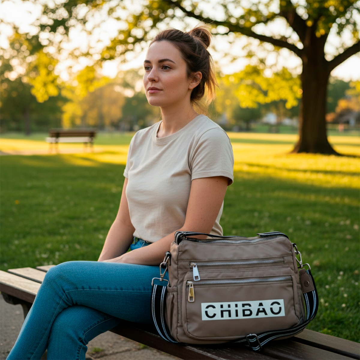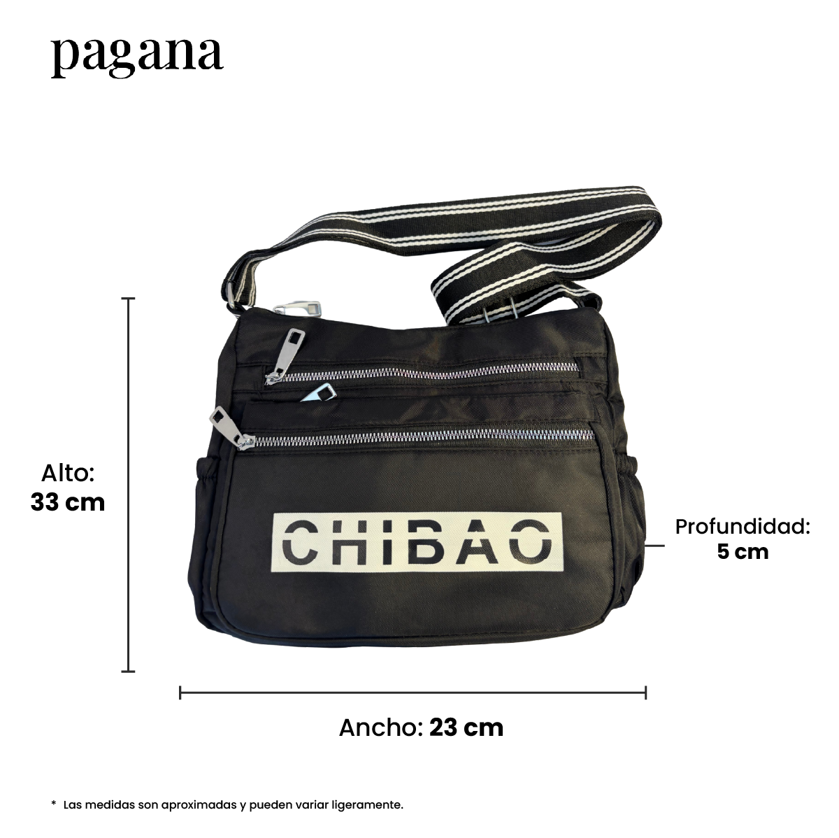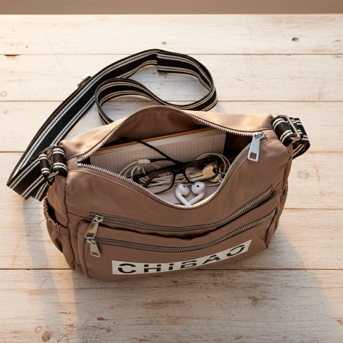 El Bolso Bandolera Chibao combina tela impermeable resistente con múltiples cierres y detalles funcionales, incluyendo el logo CHIBAO impreso al frente. Su diseño compacto y organizado permite llevar todos tus objetos esenciales de manera práctica y segura, con un estilo urbano que combina con cualquier look.