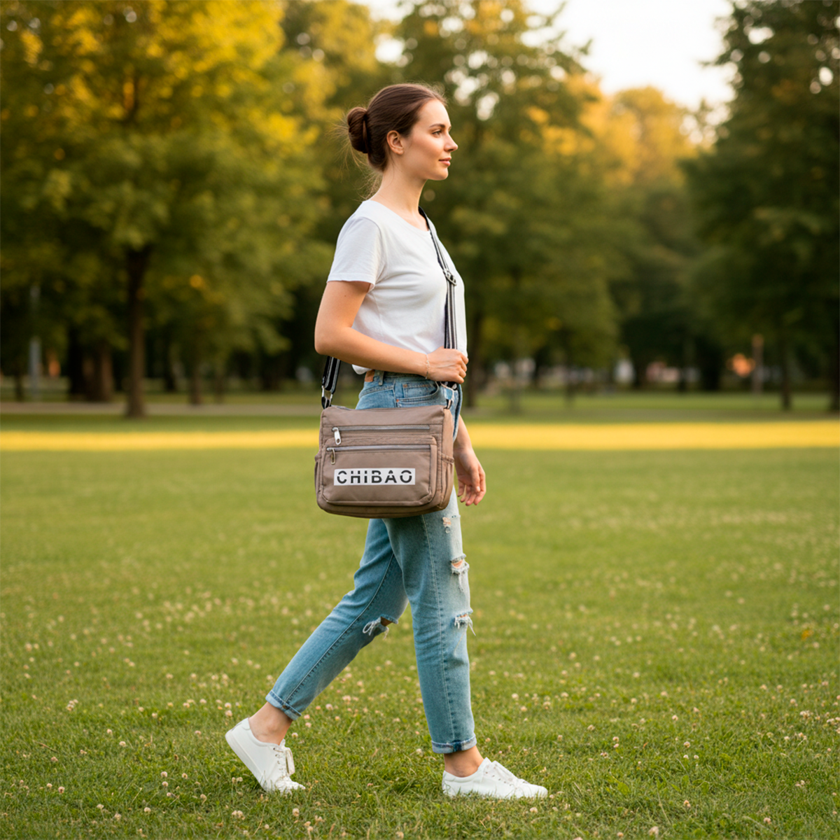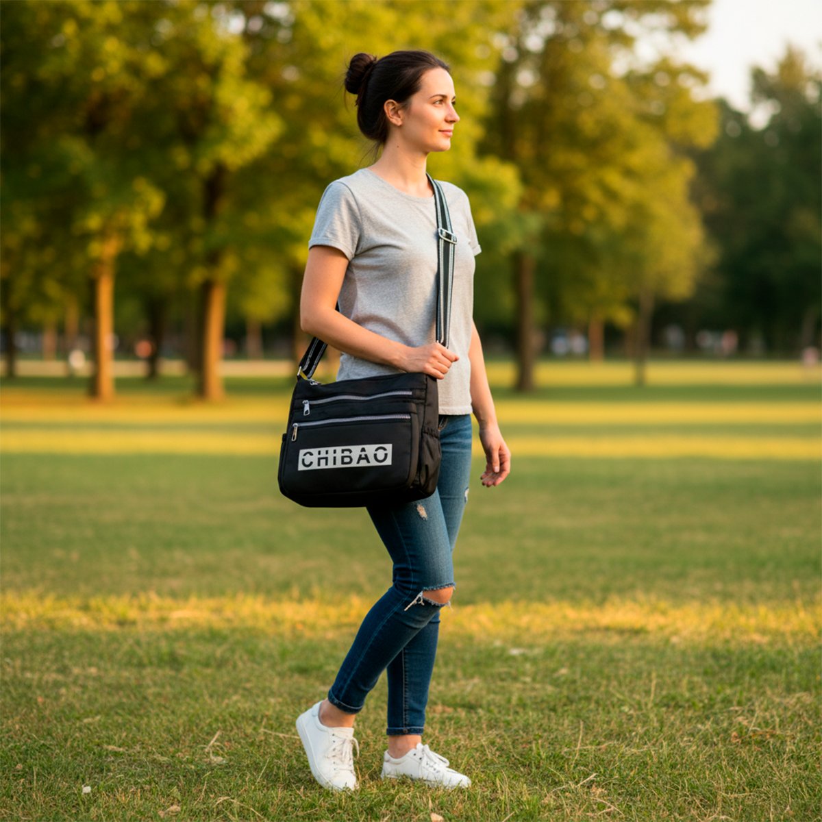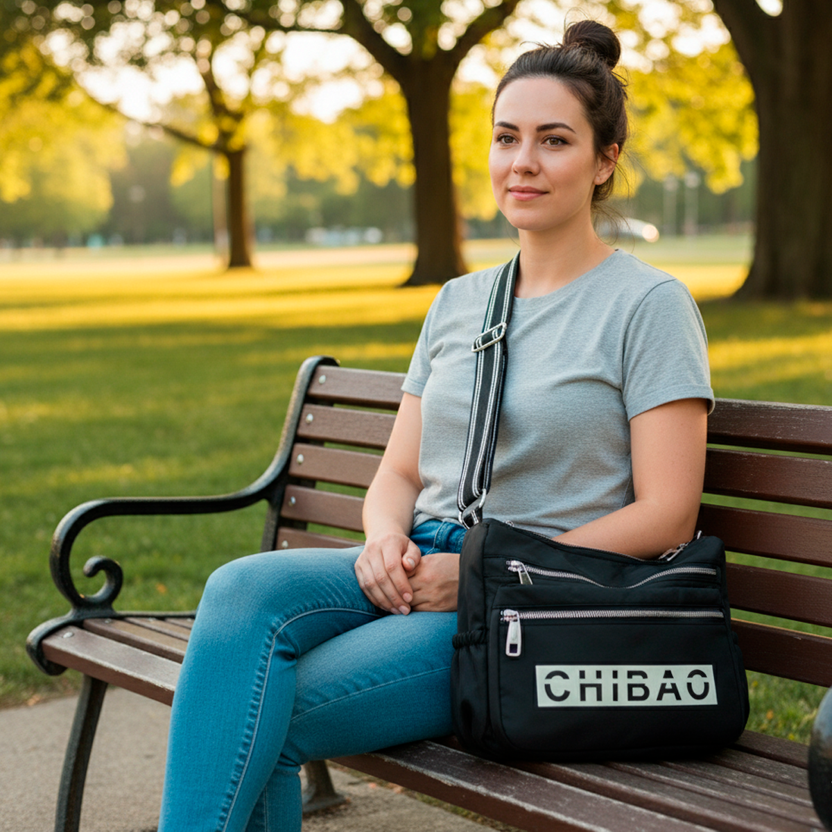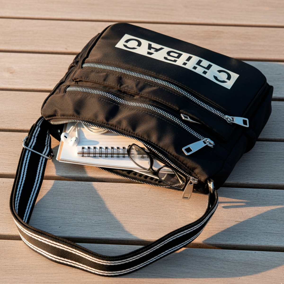 El Bolso Bandolera Chibao combina tela impermeable resistente con múltiples cierres y detalles funcionales, incluyendo el logo CHIBAO impreso al frente. Su diseño compacto y organizado permite llevar todos tus objetos esenciales de manera práctica y segura, con un estilo urbano que combina con cualquier look.