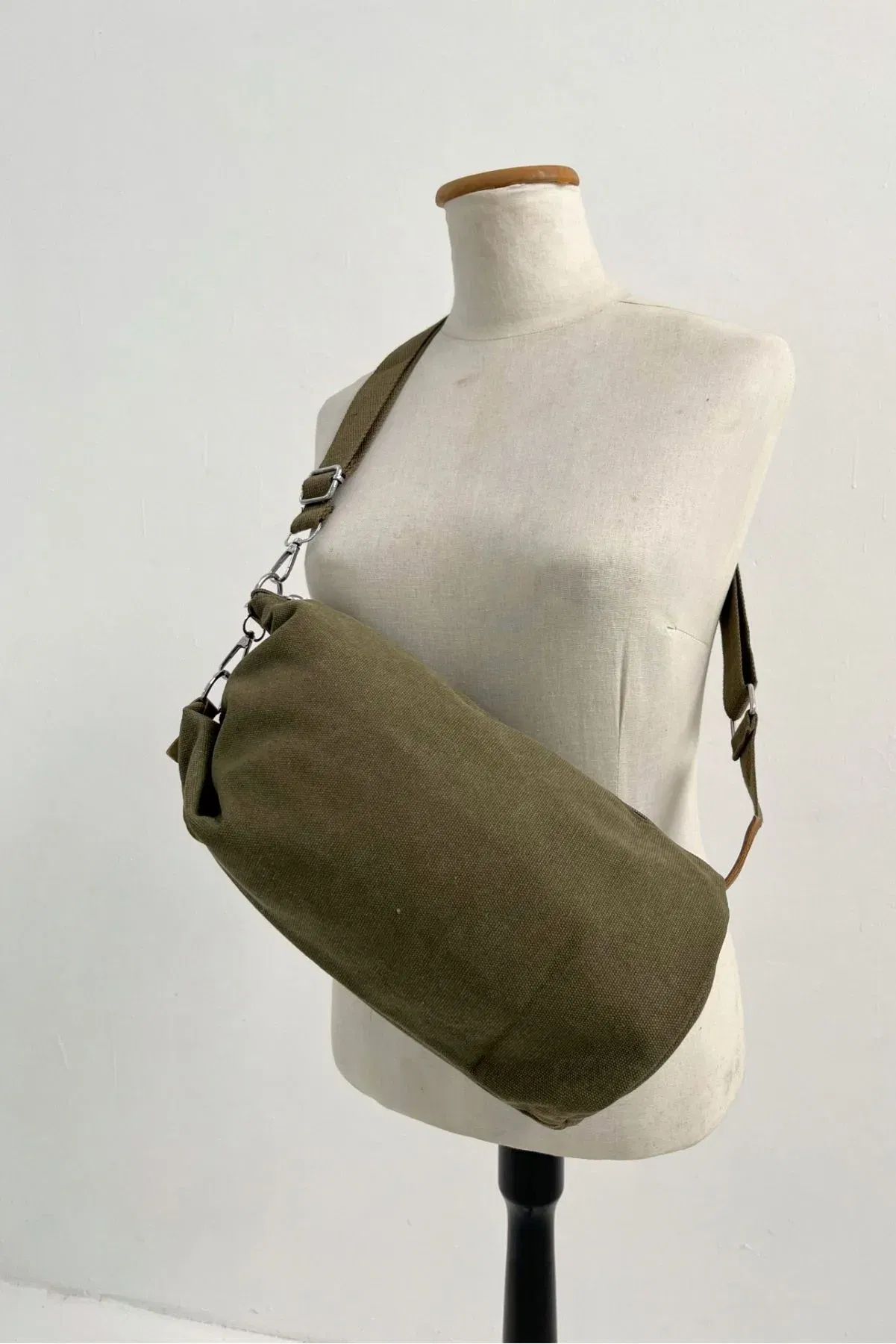 Materiales de calidad: Combinación de lona y detalles en cuerina que garantizan durabilidad y estilo.